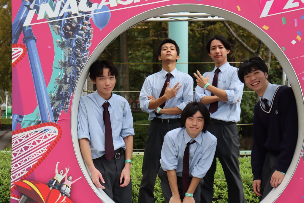 当日は晴天に恵まれ、秋を感じながら各々遊園地や買い物を堪能することができました。行きのバスの中では眠っている生徒は少なく、みんな級友と談笑しながら遠足に期待を膨らませていました。園内では、絶叫マシンへ恐れながら挑戦する姿や個々で記念撮影をしている姿があり、生徒は高校生活の最後の行事として思い出作りをすることができました。
