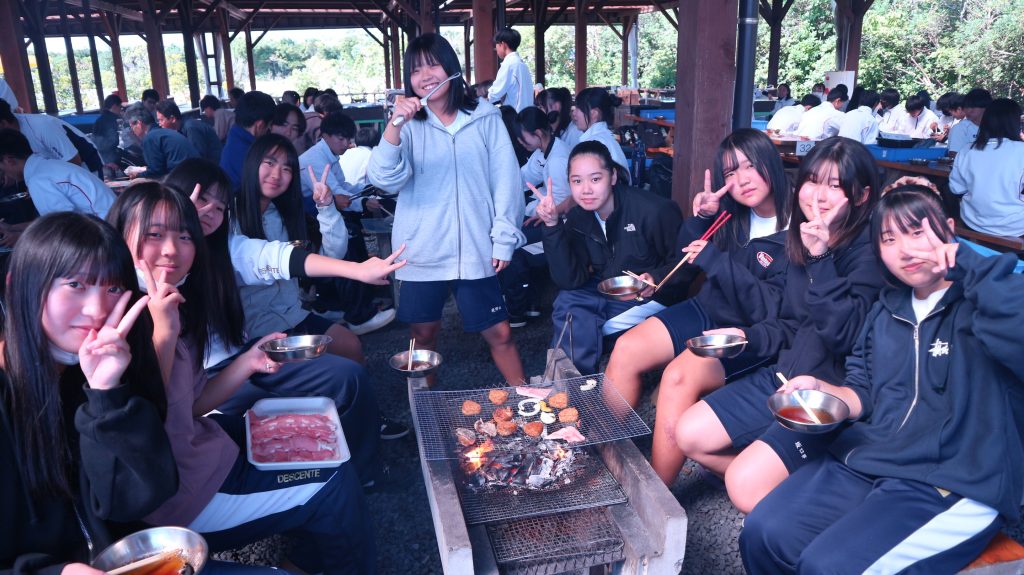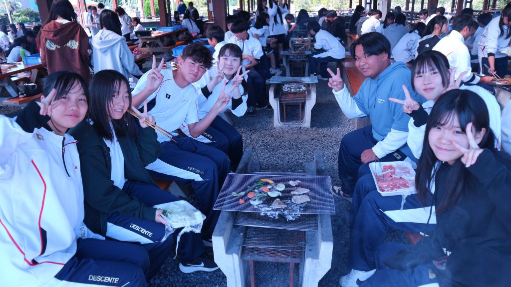 1年生は、南知多ビーチランドへ遠足に行きました。お昼はバーベキューをしました。バーベキューでは、慣れないながらもクラスメイトと協力して、野菜やお肉を焼いて食べていました。その後、園内を散策していました。ある生徒は、イルカショーを楽しそうに友人とみていました。クラスを超えて、楽しそうに生徒は交流し、過ごしていました。