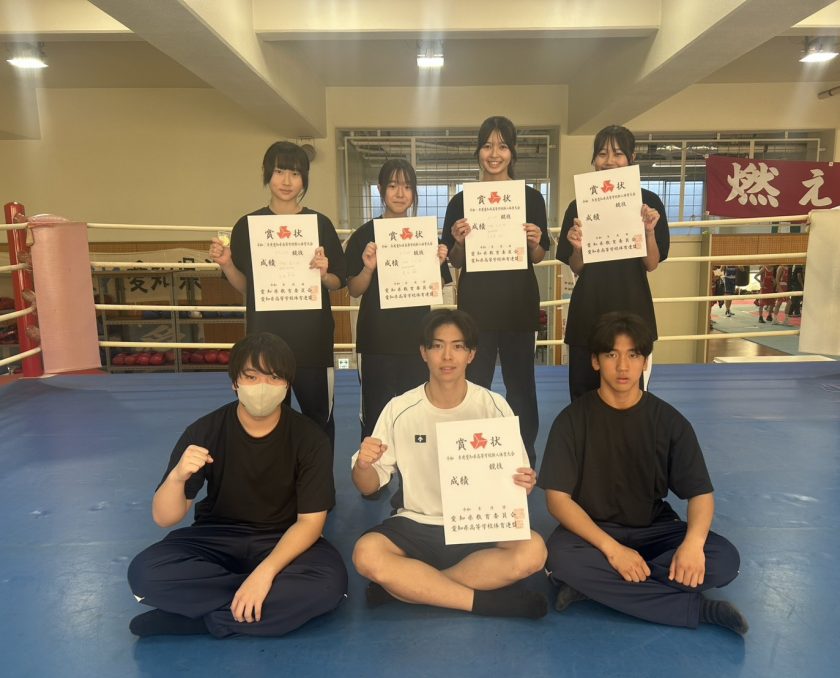 本校からは男子5名、女子4名、合計9名の選手がエントリーし、男子ウェルター級3位、女子ピン級1位・2位そして女子バンタム級2位・3位と5名が入賞することができました。惜しくも敗れた選手もいますが、日ごろの練習の成果が試合に表れていました。